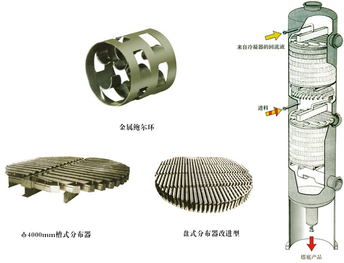 鮑爾環填料在環壁上開有兩排帶有內伸舌葉的窗孔,每排窗孔有五個舌葉,新世紀的填料每個舌葉均勻指向環心,其中心幾乎相搭,使塔內、液體能夠從窗口自由通過,填料層內的汽、液體分布較改善。因工藝比較成熟,應用普遍,故仍是被選用的主要環形填料。